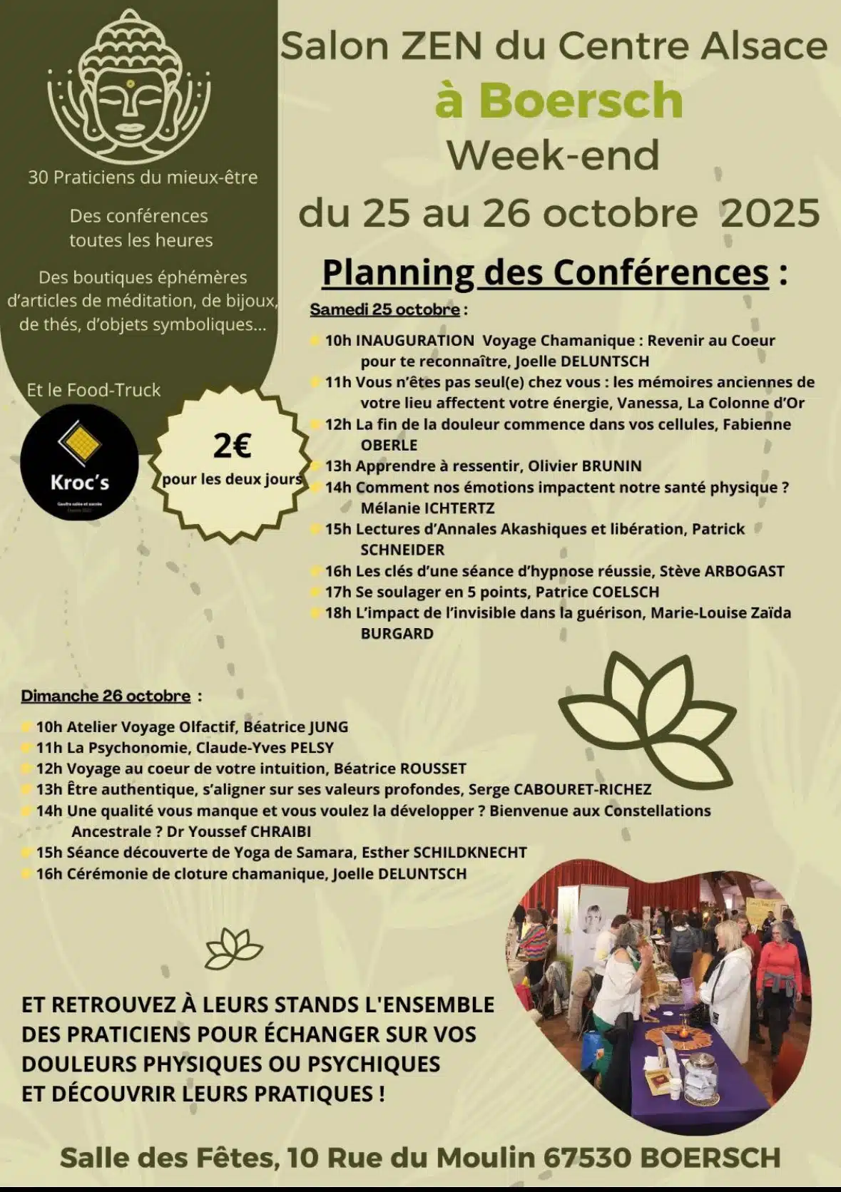 Voici un agenda bien rempli pour ce salon zen à Boersch, organisé par l’association La Ferme des Coeurs Conscients.